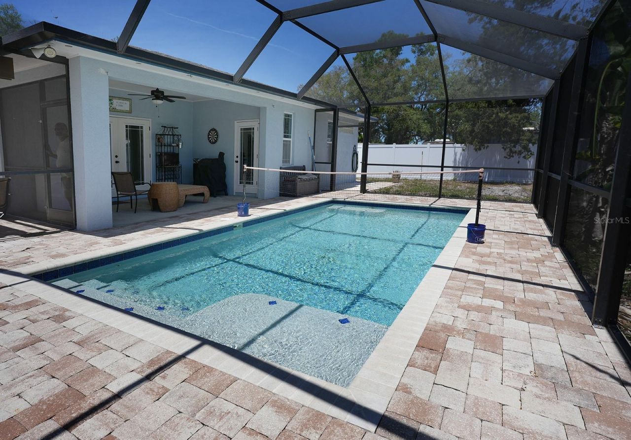 Charming POOL home at end of a private road, peaceful and quiet. This house is built like a mini fortress and is In the highly desirable area of Seminole - unincorporated Pinellas County-NO HOA and NO flood insurance required (68 ft elevation). . Solid 2015 block construction home, This energy-efficient, hurricane-impact window home features an open floor plan, high ceilings, stained concrete floors, and a chef's kitchen with granite countertops, custom soft-close maple cabinets, and new stainless appliances.This 3 Bedroom and 2 bath home comes with spacious owner's suite with spa-style bath, jetted tub (endless hot water via tankless + in-line heater), dual-head shower, walk-in closet, and direct access to the covered patio and screened pool area.Enjoy a heated saltwater pool (12x20) with swim jets, therapy features, and splash pad, oversized screened lanai, pergola, and gas hookups for outdoor kitchen/fire pit-perfect for entertaining.Additional highlights: flex/library room (possible office), indoor laundry, 2-car garage, spray foam insulation, large attic storage, and ample on-site parking with dedicated space for RV and boat storage.Located near the Pinellas Trail and Lake recreation area. just 2.8 miles to the beach. Low insurance and appraisal on hand at $590K. Private, durable, and built for Florida living-schedule your showing today. Furniture is negotiable.